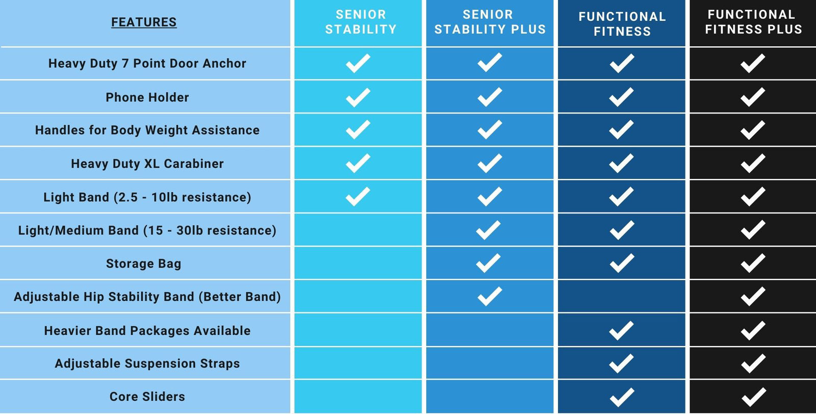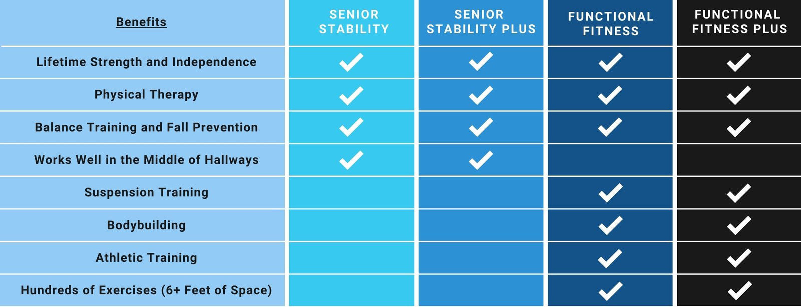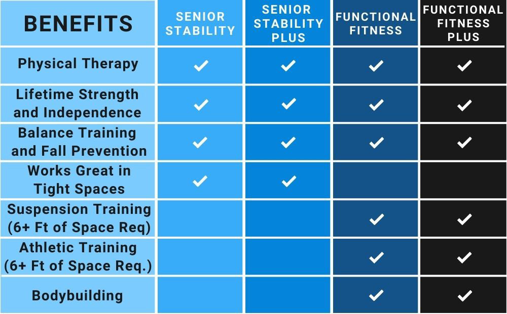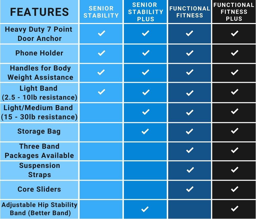 The DoorGym was created to help seniors get stronger and maintain their independence. By focusing on robust safety and security, we created the most versatile and compact home gym on the market today. Click below for a guided walk through of each package, we have an option for you!