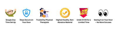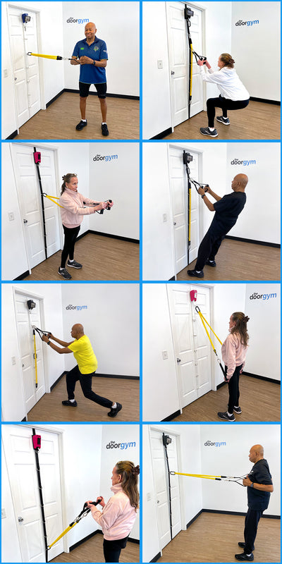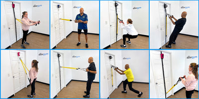 Attaching the handles to The DoorGym provides assisted bodyweight training to strengthen large muscle groups like the legs, glutes, core, and back. The resistance band (2.5–10 lb) is ideal for training smaller muscles such as the chest, shoulders, arms, and rotator cuff — giving you full-body strength training in one simple system.
