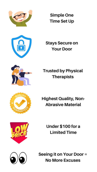 See the VIDEO below for product details. Our Standard Model works on doors between 6'5 - 7" (196-214cm) and is the choice of over 97% of our customers. See our FREQUENTLY ASKED QUESTIONS PAGE for additional information.
