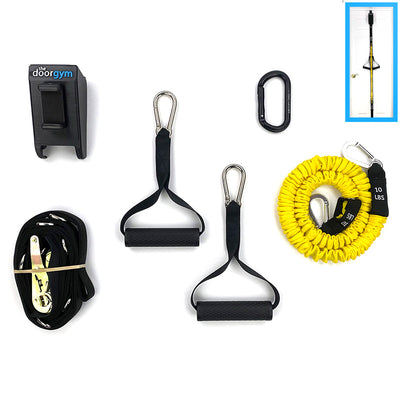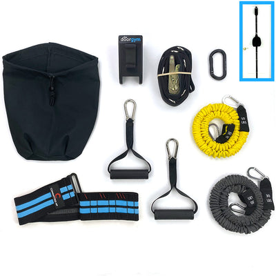 Every DoorGym comes with our patented heavy duty door anchor and phone holder. The difference between the packages is in the equipment you connect to it.