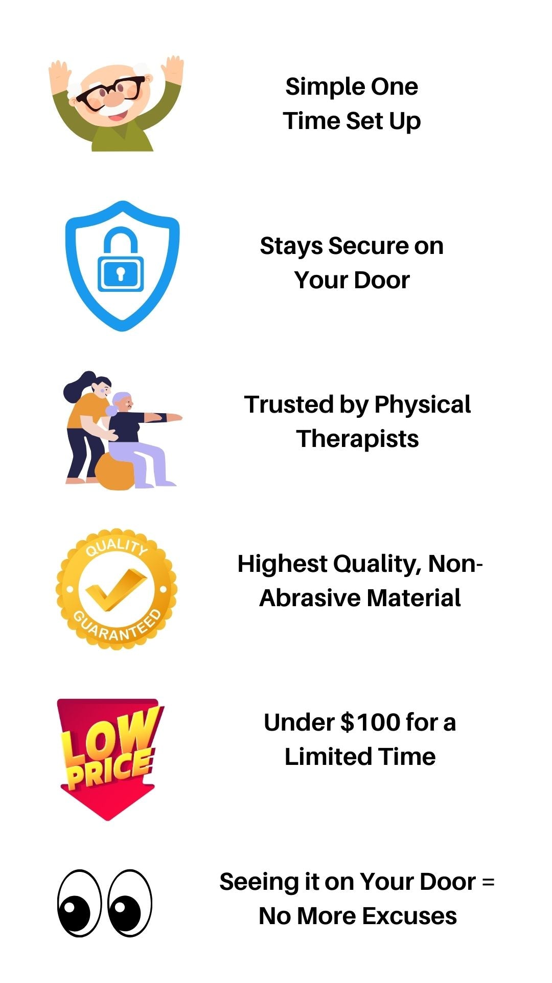For additional information, visit the SET UP page and watch the video titled "CHOOSING A DOOR" where we provide visual examples. If you still have questions, feel free to give us a call at 206-856-6460 or send an email to info@thedoorgym.com.
