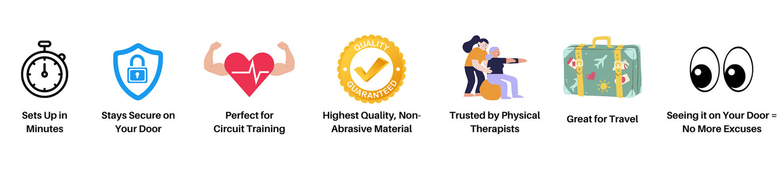 Everyone says that their product is the best. What makes The DoorGym different is that it is the only product on the market which provides safe and secure attachment of both resistance bands and suspension straps at any height on your door. With the addition of core sliders there are thousands of possibilities. When it comes to the number of exercises vs price, and ability to accomodate every fitness level, no other product comes close.